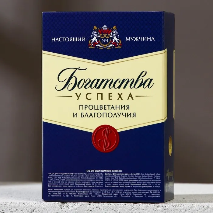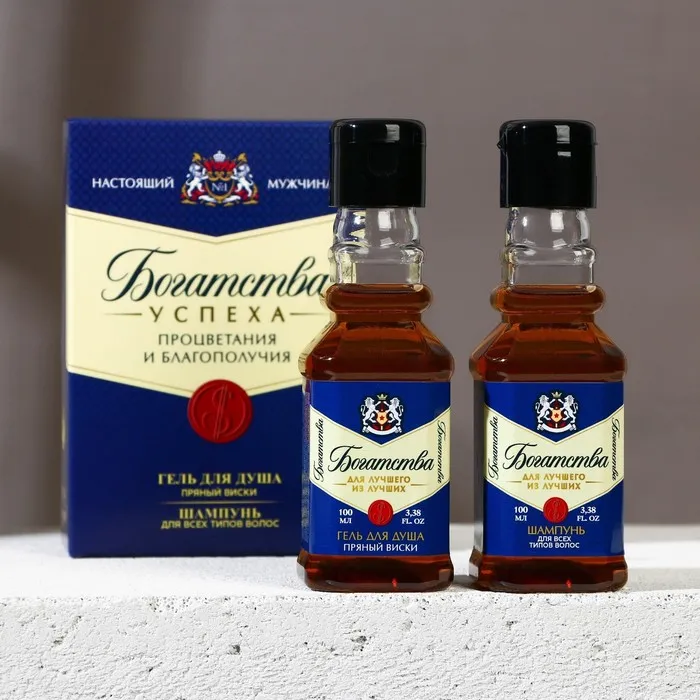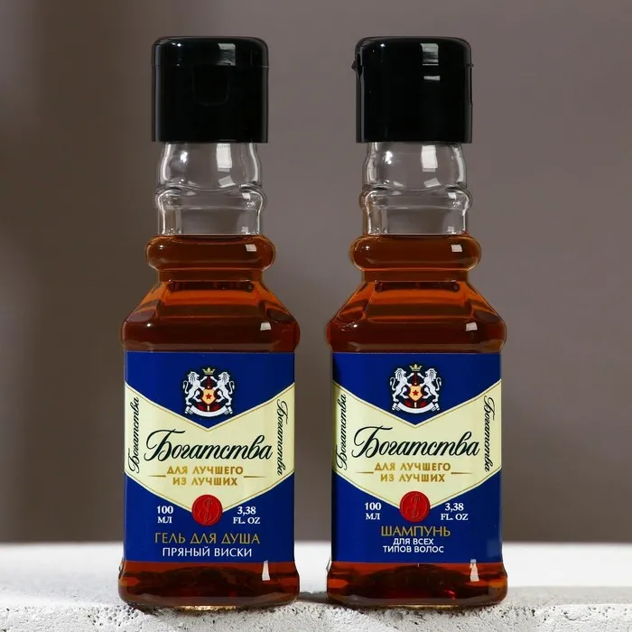 Подарочный набор косметики «Богатства!», гель для душа и шампунь для волос во флаконах виски, 2×100 мл, Чистое счастье — Характеристики