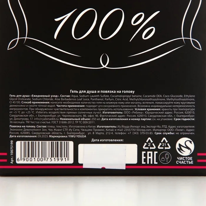Подарочный набор косметики ЧИСТОЕ СЧАСТЬЕ «Самой лучшей»: гель для душа виски 250 мл и повязка на голову — Характеристики