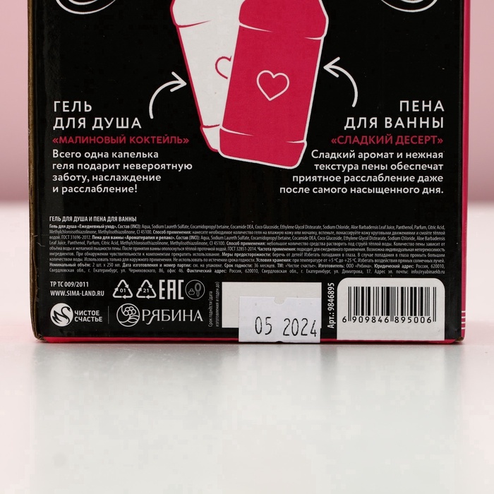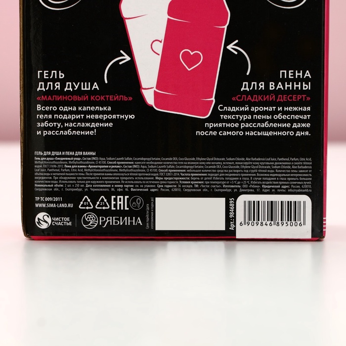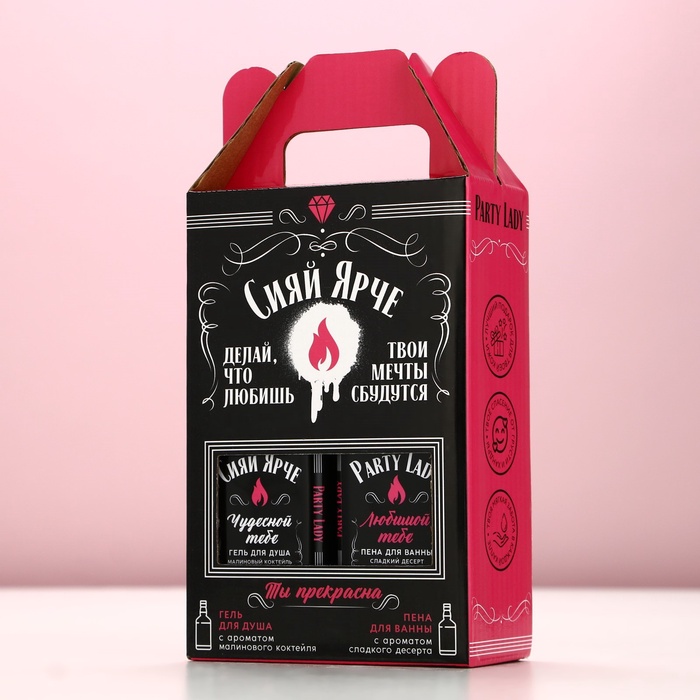 Подарочный набор косметики ЧИСТОЕ СЧАСТЬЕ «Сияй ярче!»: гель для душа и пена для ванны виски, 2×250 мл — Характеристики