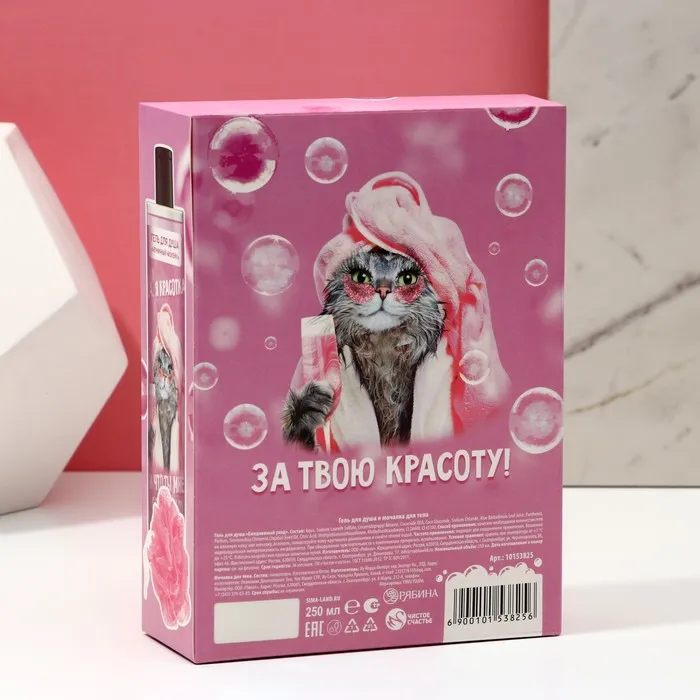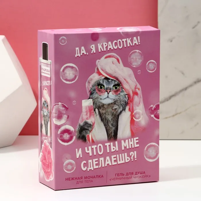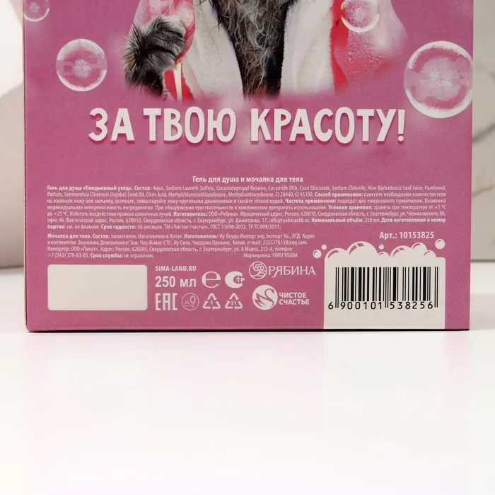Подарочный набор косметики «Да, я красотка!», гель для душа 250 мл и мочалка, Чистое счастье — Характеристики