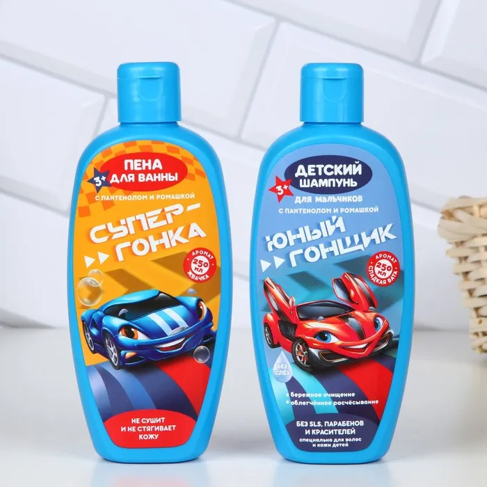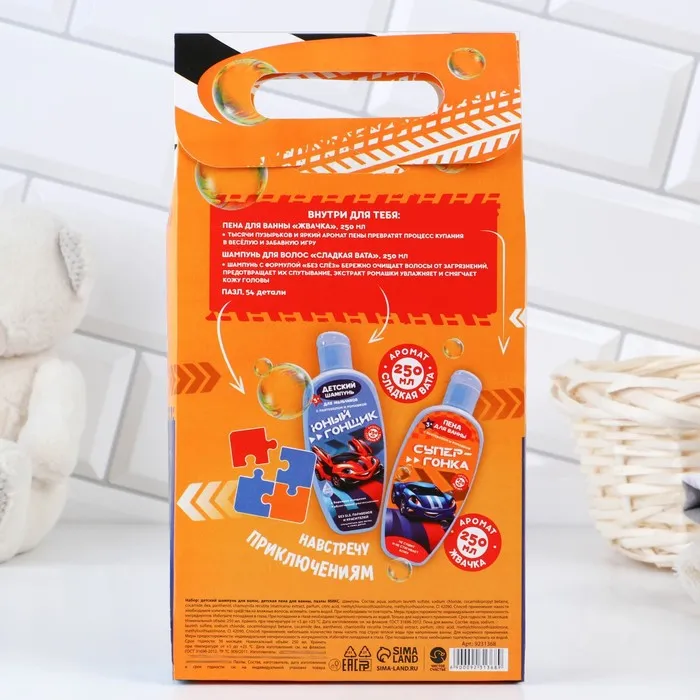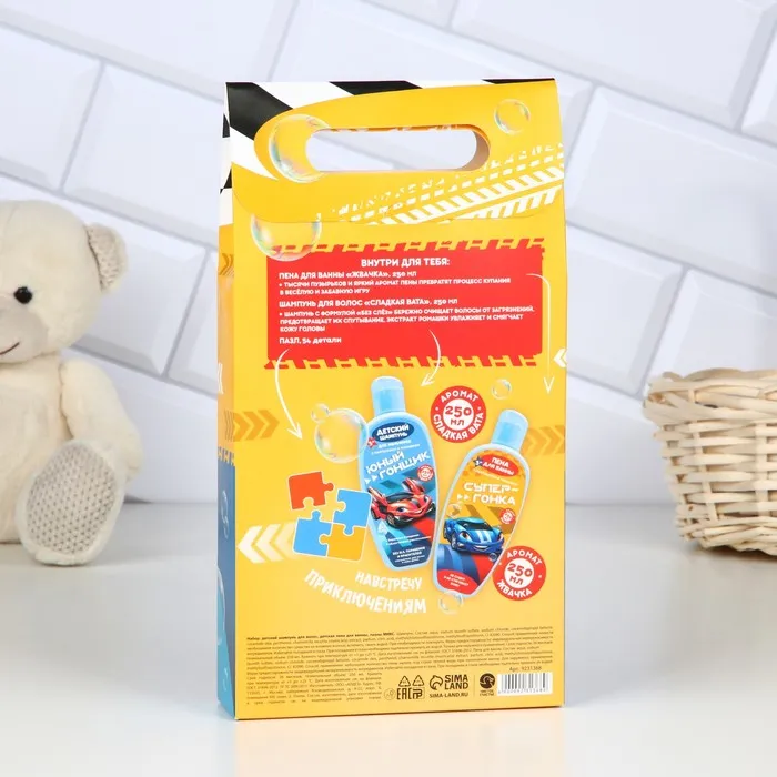 Подарочный набор косметики детский «Настоящий чемпион», шампунь для волос и пена для ванны, 2 х 250 мл, пазл, ЧИСТОЕ СЧАСТЬЕ — Характеристики
