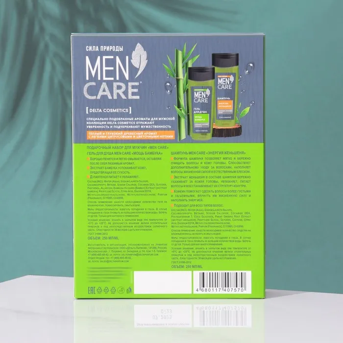 Подарочный набор косметики для мужчин Men Care: гель для душа, 250 мл + шампунь, 250 мл — Характеристики