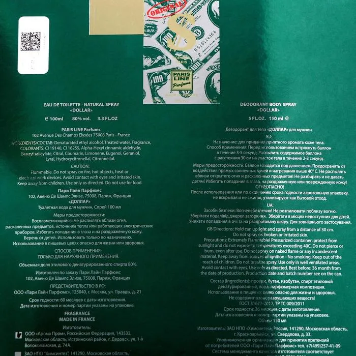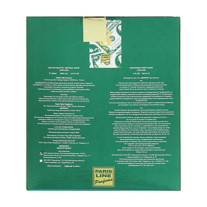 Подарочный набор косметики для мужчин: Туалетная вода Dollar + дезодорант — Характеристики
