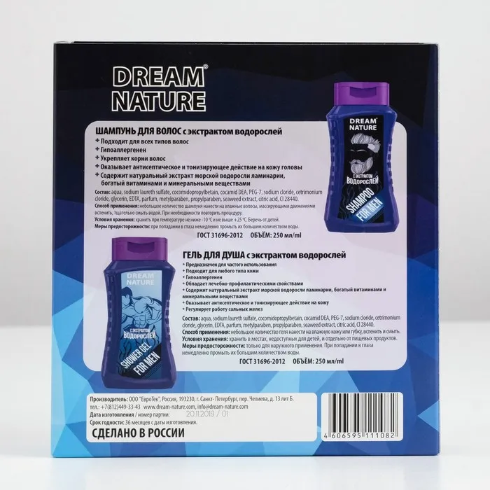 Подарочный набор косметики для настоящего мужчины Dream Nature, экстракт водорослей, 250 мл — Характеристики