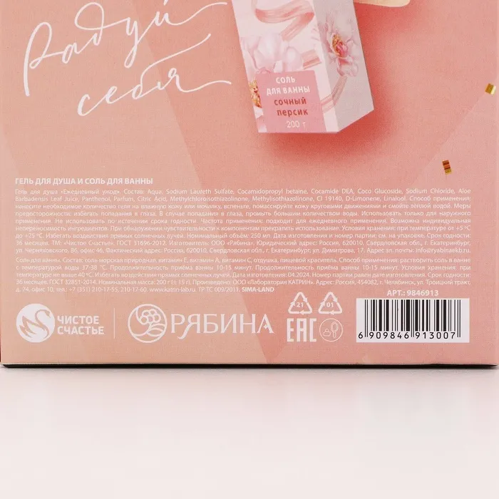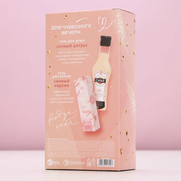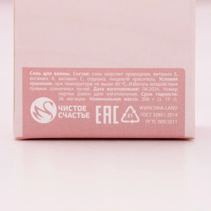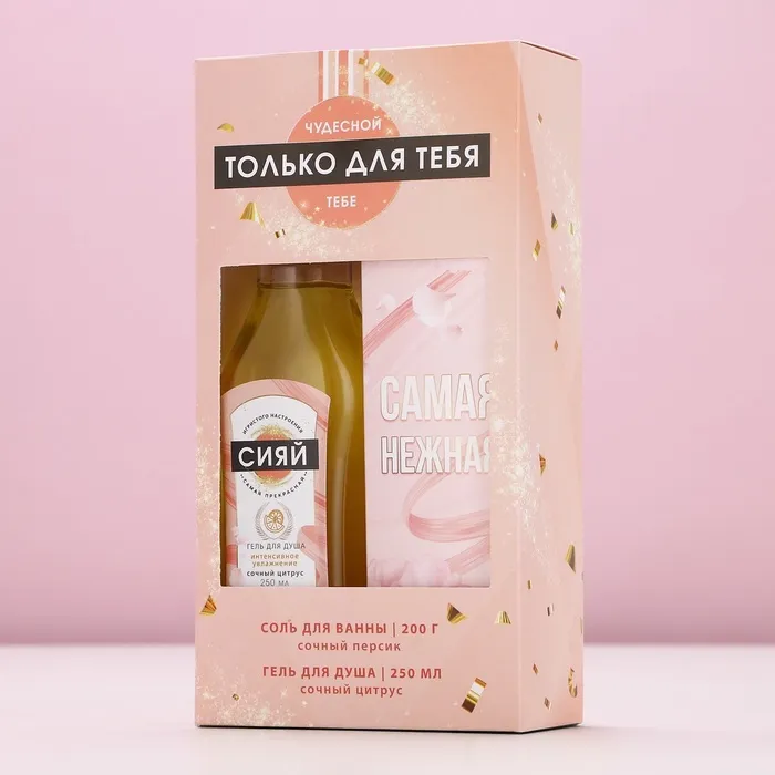 Подарочный набор косметики «Для тебя», гель для душа мартини 250 мл и соль для ванны 200 г, Чистое счастье — Характеристики