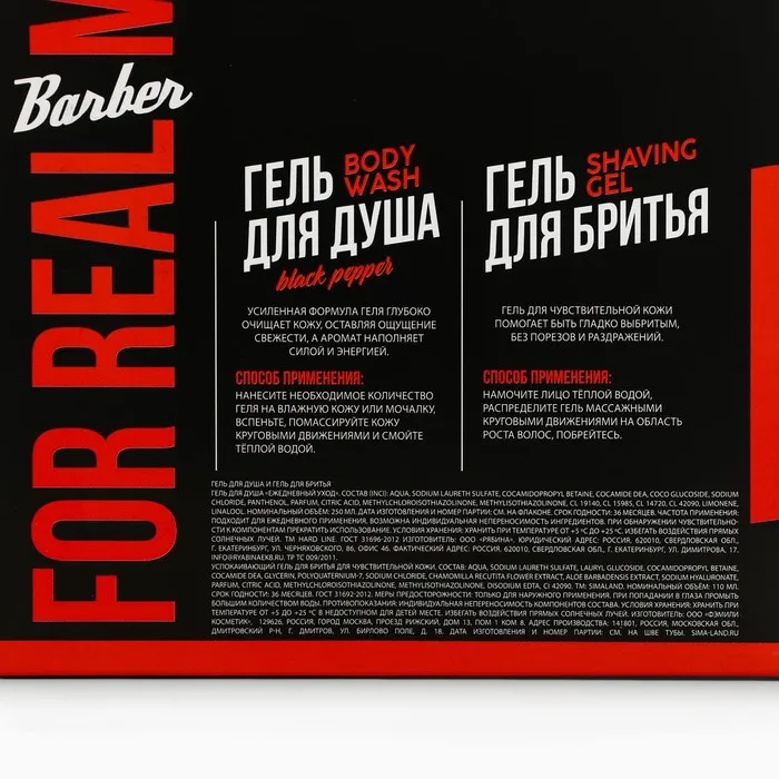 Подарочный набор косметики For real men, гель для душа 250 мл и гель для бритья 110 мл, аромат черного перца, HARD LINE — Характеристики