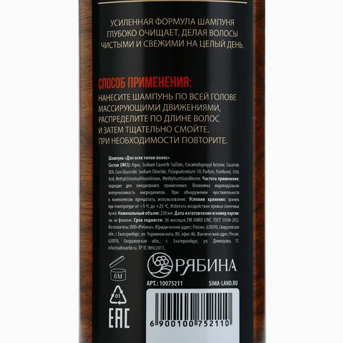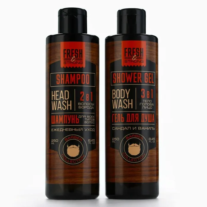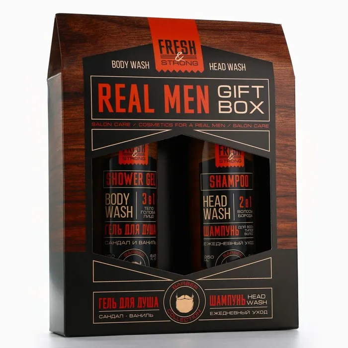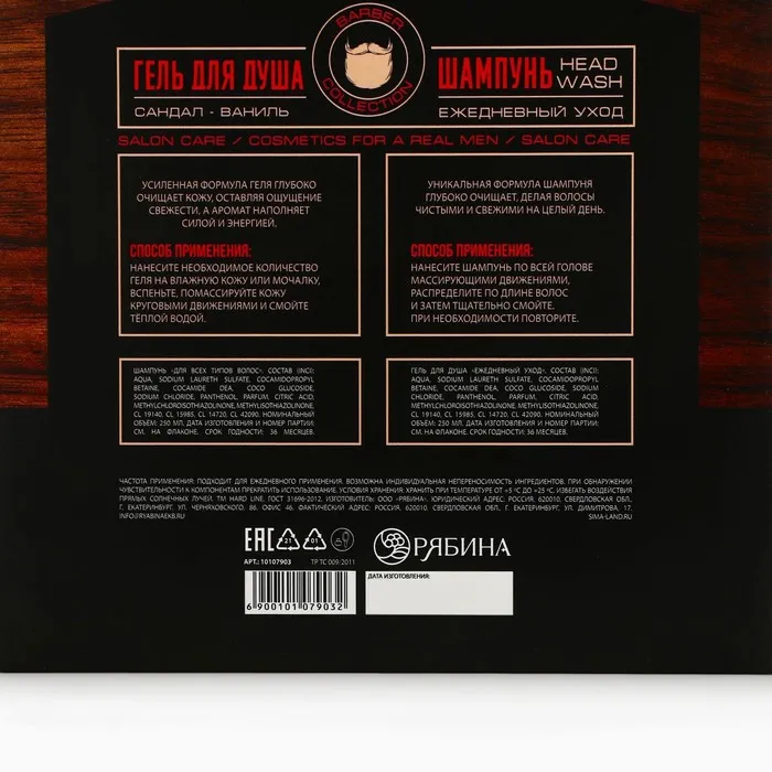Подарочный набор косметики, гель для душа 250 мл и шампунь 250 мл, аромат сандала и ванили, HARD LINE — Характеристики