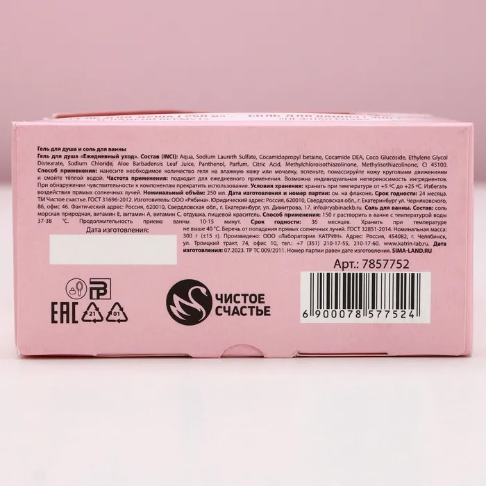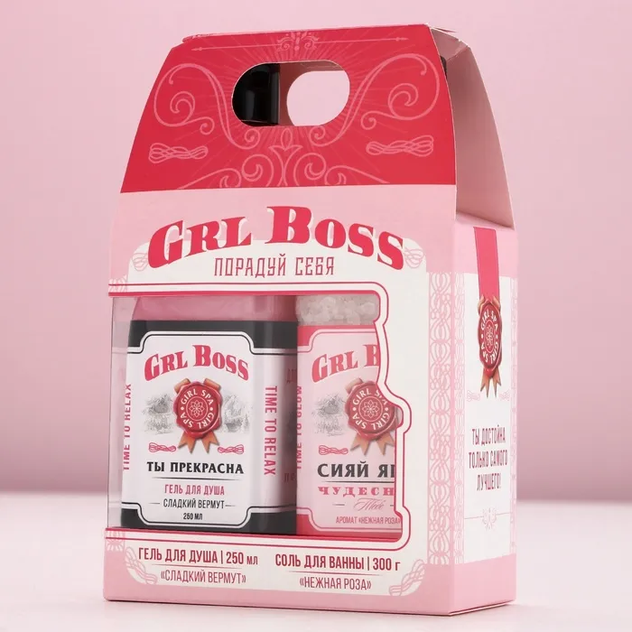 Подарочный набор косметики GRL BOSS, гель для душа виски 250 мл и соль для ванны 300 г, Чистое счастье — Характеристики