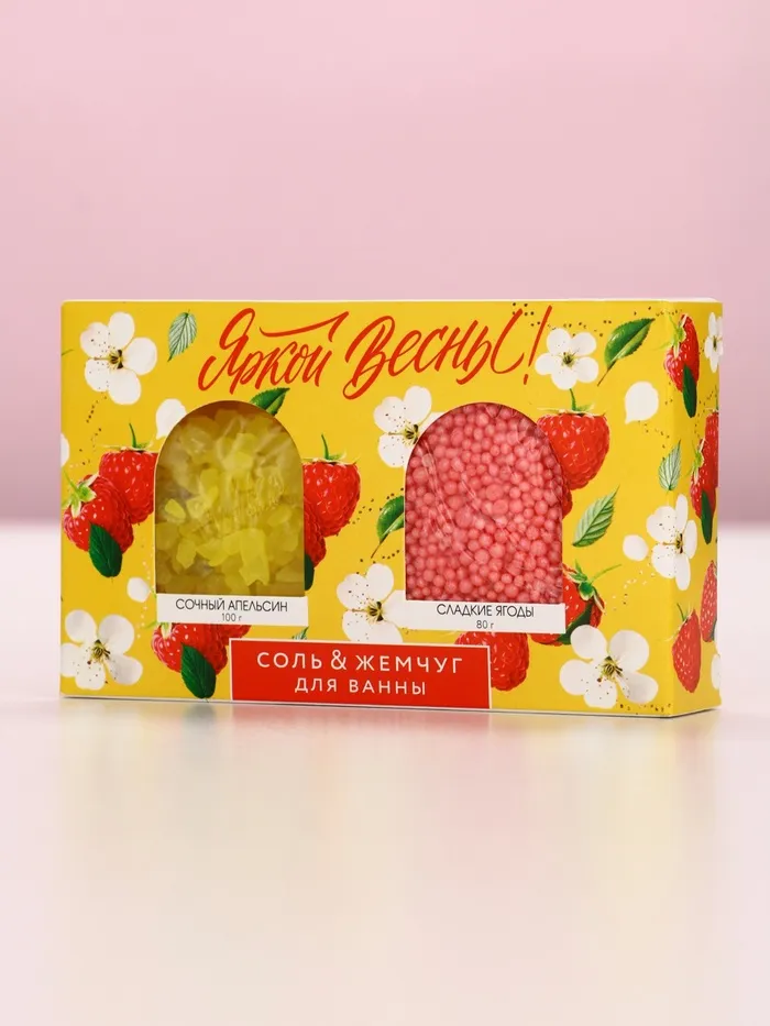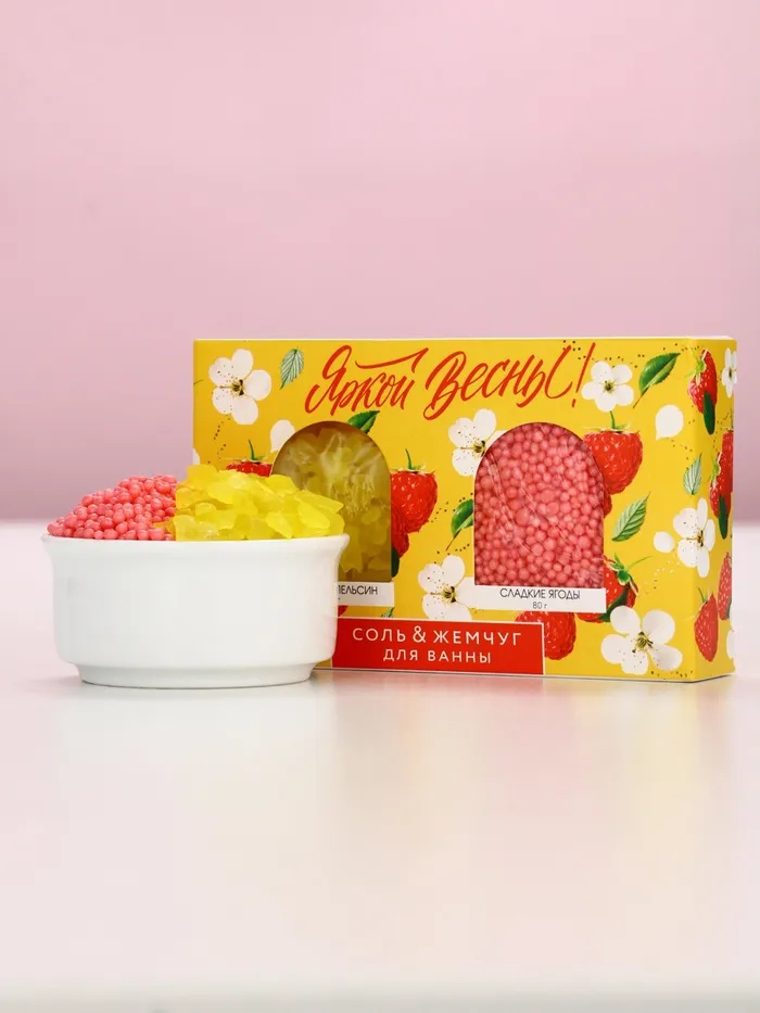 Подарочный набор косметики «Яркой весны!», соль для ванны 100 г и жемчуг для ванны 80 г, Чистое счастье — Характеристики