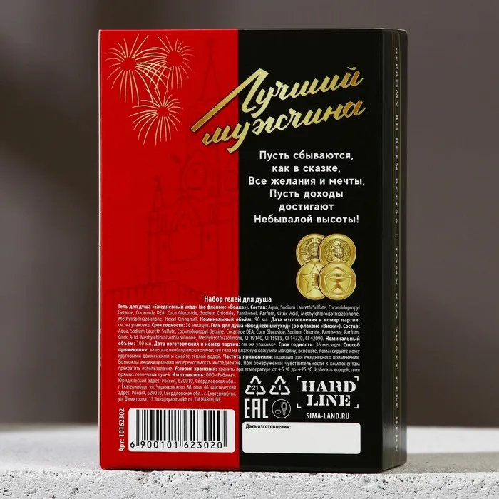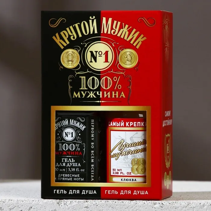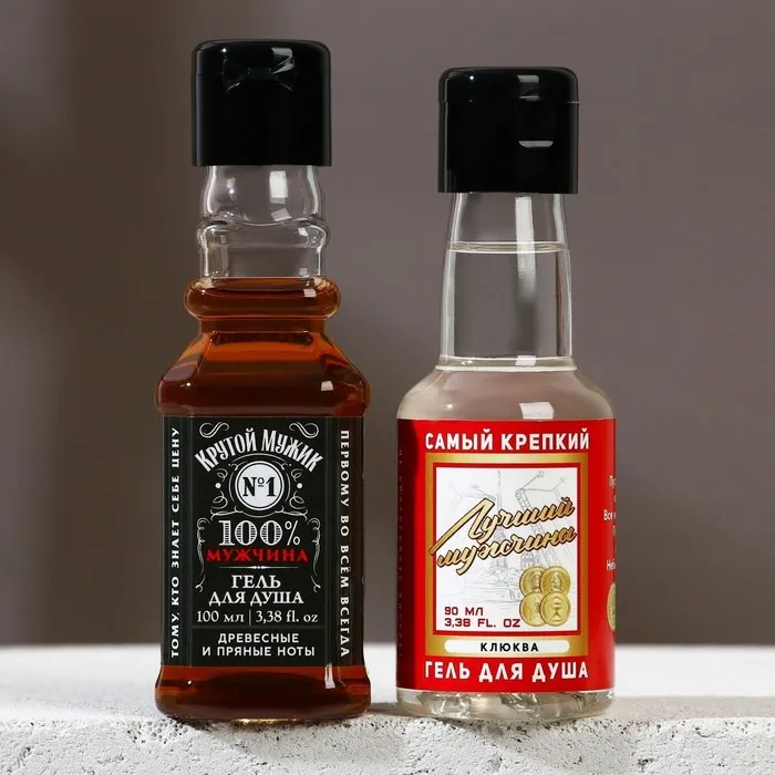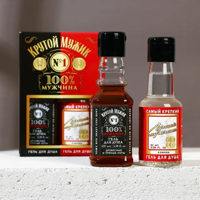 Подарочный набор косметики «Крутой мужик», гель для душа во флаконе виски 100 мл и гель для душа во флаконе водки 90 мл, Чистое счастье — Характеристики