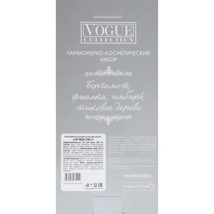 Подарочный набор косметики мужской VIP man only, гель для душа 250 мл, парфюмерная вода 30 мл — Характеристики