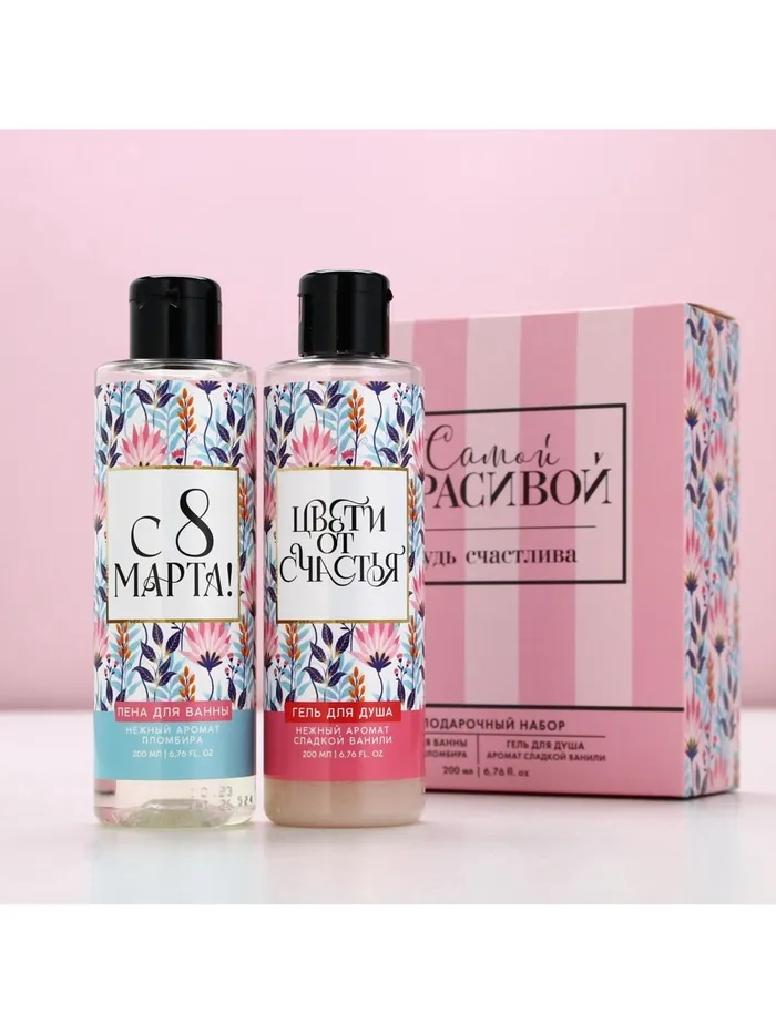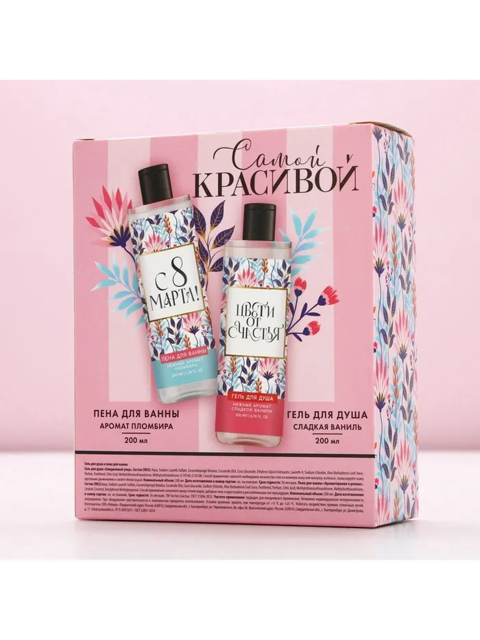 Подарочный набор косметики на 8 марта «Самой красивой», гель для душа 200 мл и пена для ванны 200 мл, Чистое счастье — Характеристики