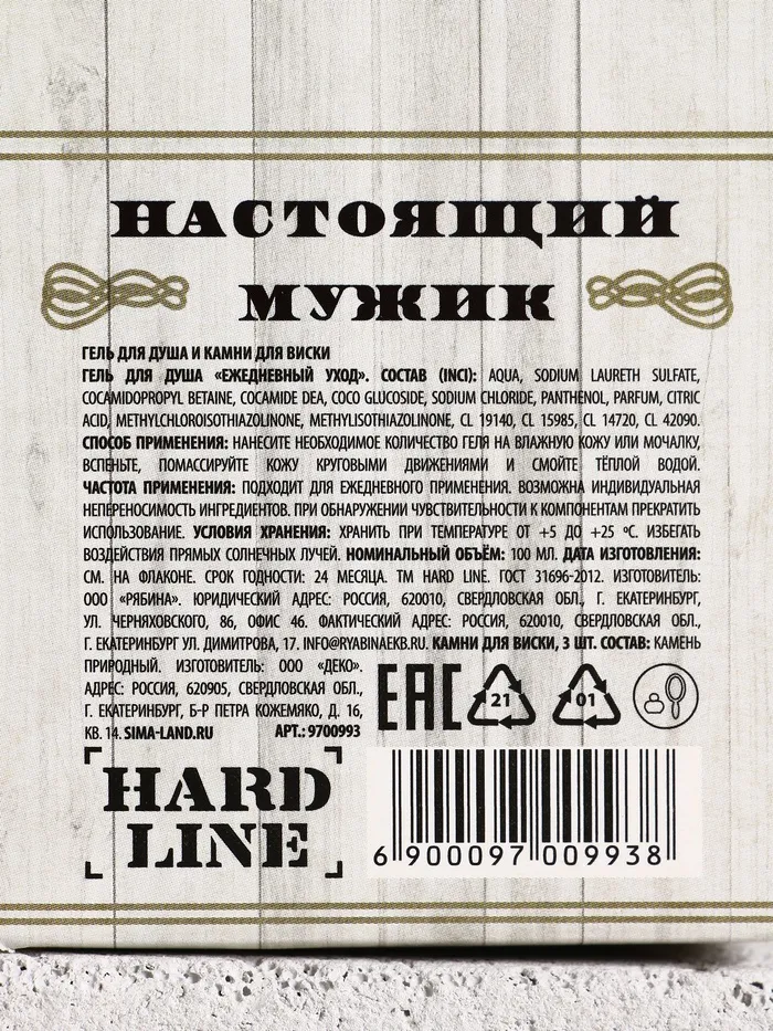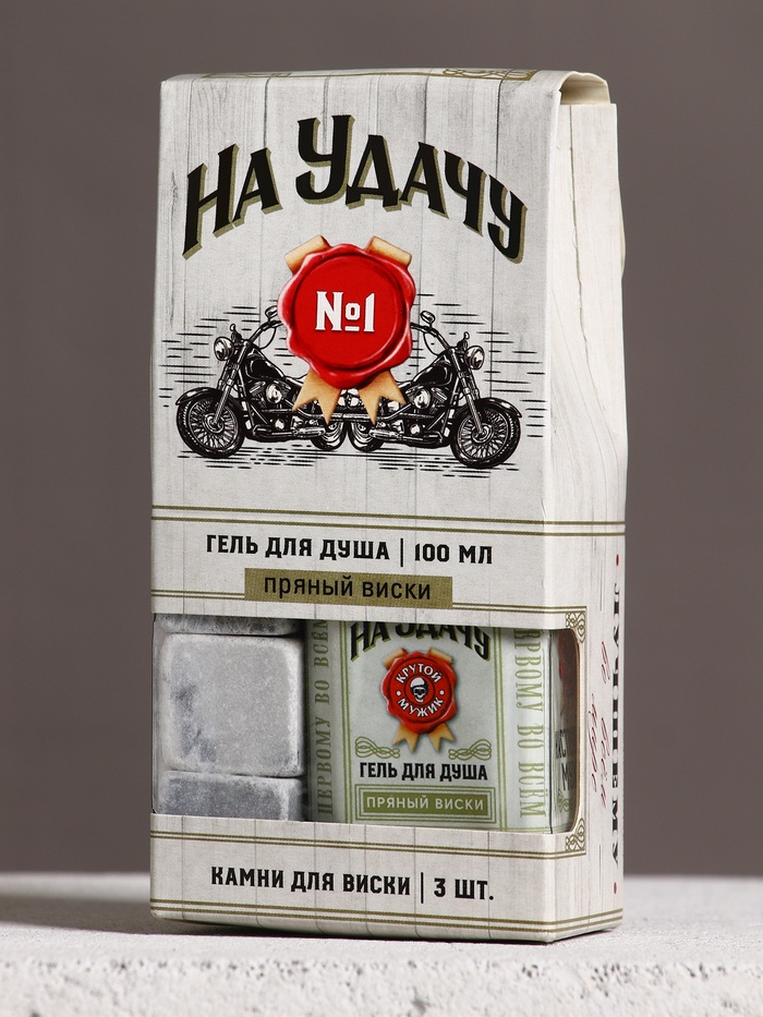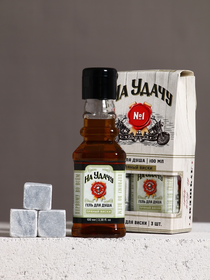 Подарочный набор косметики «На удачу!», гель для душа во флаконе виски 100 мл и камни для виски 3 шт., Чистое счастье — Характеристики