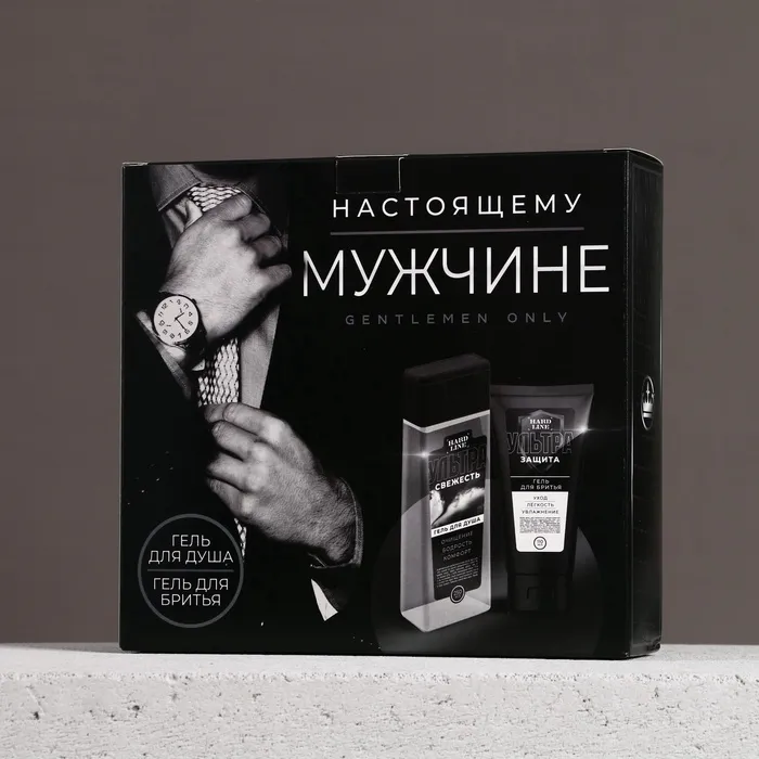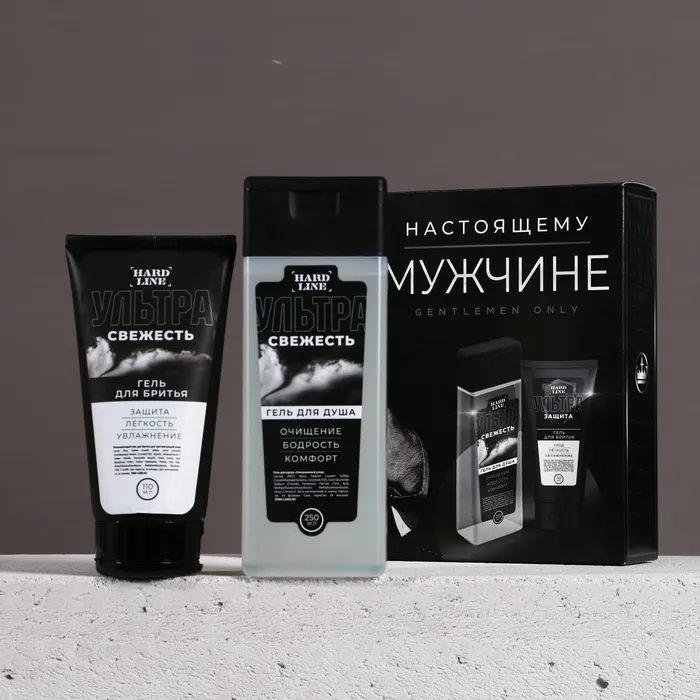 Подарочный набор косметики «Настоящему мужчине», гель для душа 250 мл и гель для бритья 110 мл, HARD LINE — Характеристики