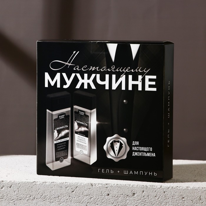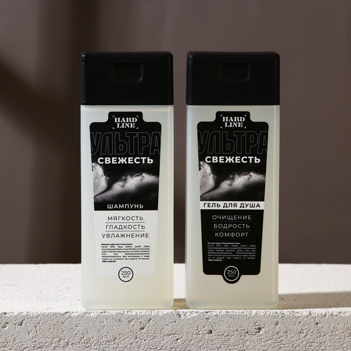 Подарочный набор косметики «Настоящему мужчине», гель для душа 250 мл и шампунь для волос 250 мл, HARD LINE — Характеристики