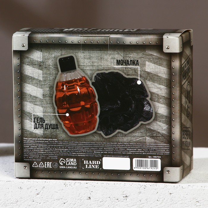 Подарочный набор косметики «Необходимый запас», гель для душа 250 мл и мочалка для тела, HARD LINE — Характеристики