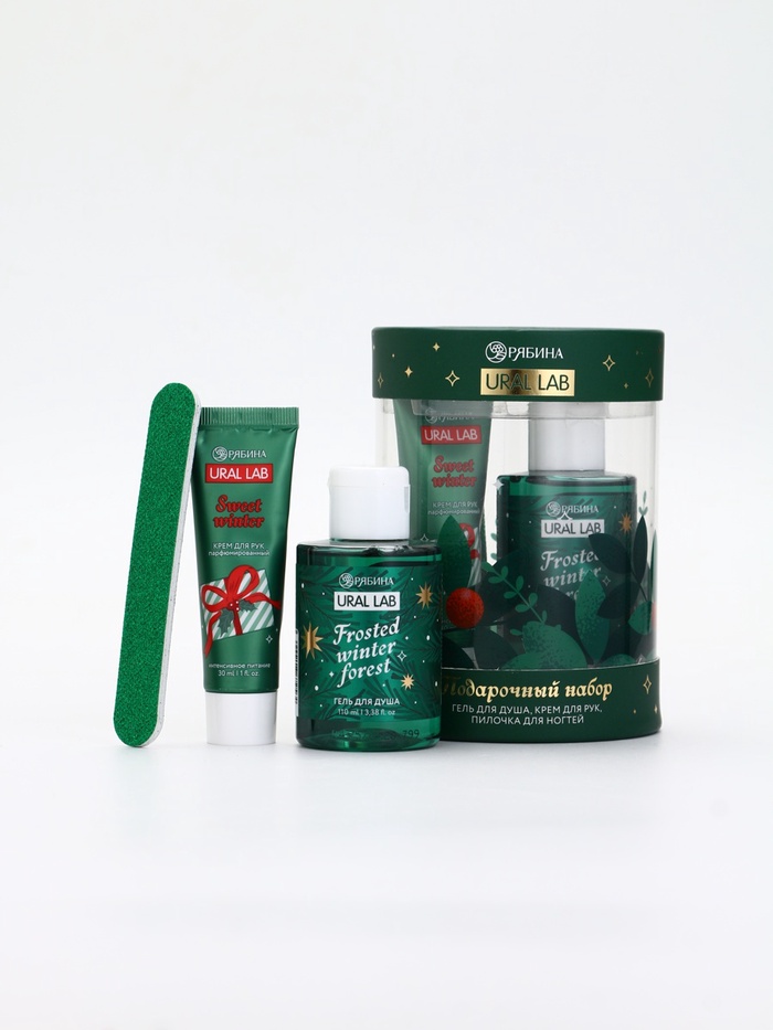 Подарочный набор косметики New Year Collection, гель для душа, крем для рук, пилочка, зелёный, URAL LAB — Характеристики