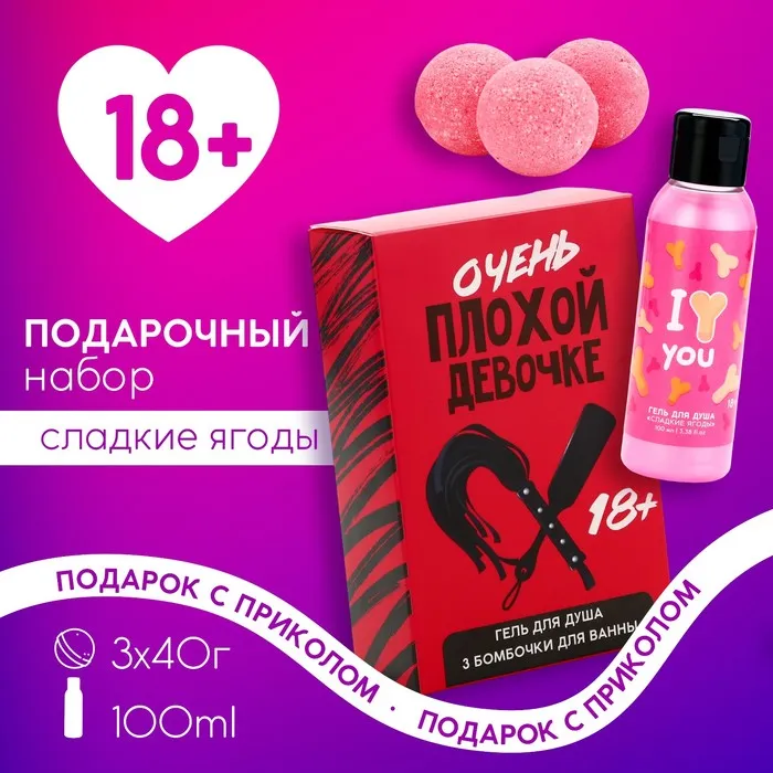 Подарочный набор косметики «Очень плохой девочке», гель для душа 100 мл и бомбочки для ванны 3 х 40 г, 18+, ЧИСТОЕ СЧАСТЬЕ — Характеристики