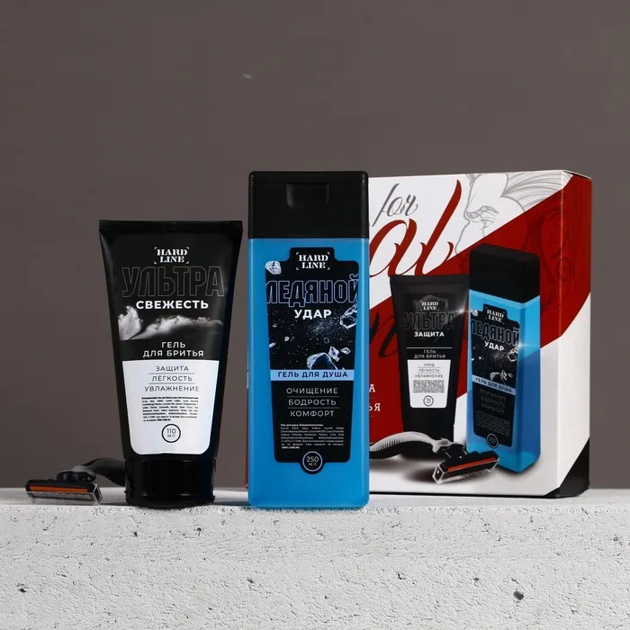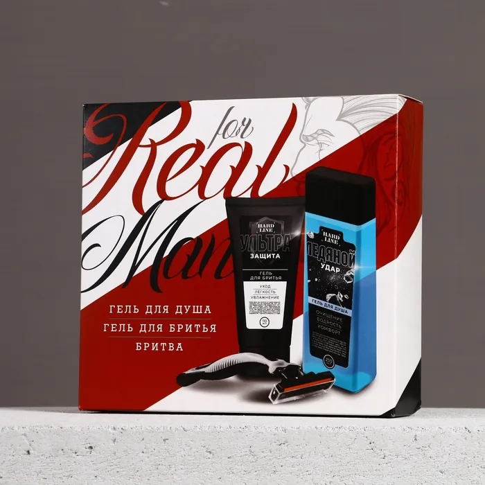 Подарочный набор косметики Only Real Man, гель для душа 250 мл, гель для бритья 110 мл, бритва, HARD LINE — Характеристики