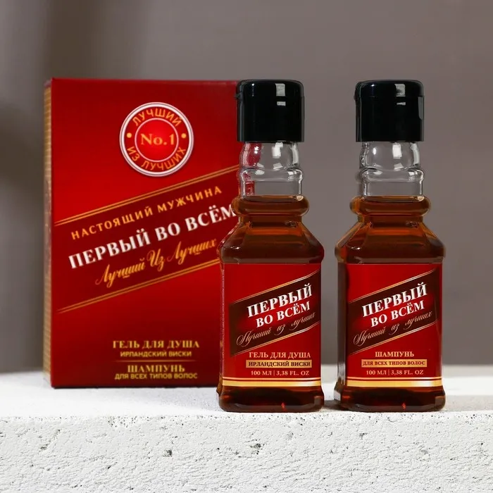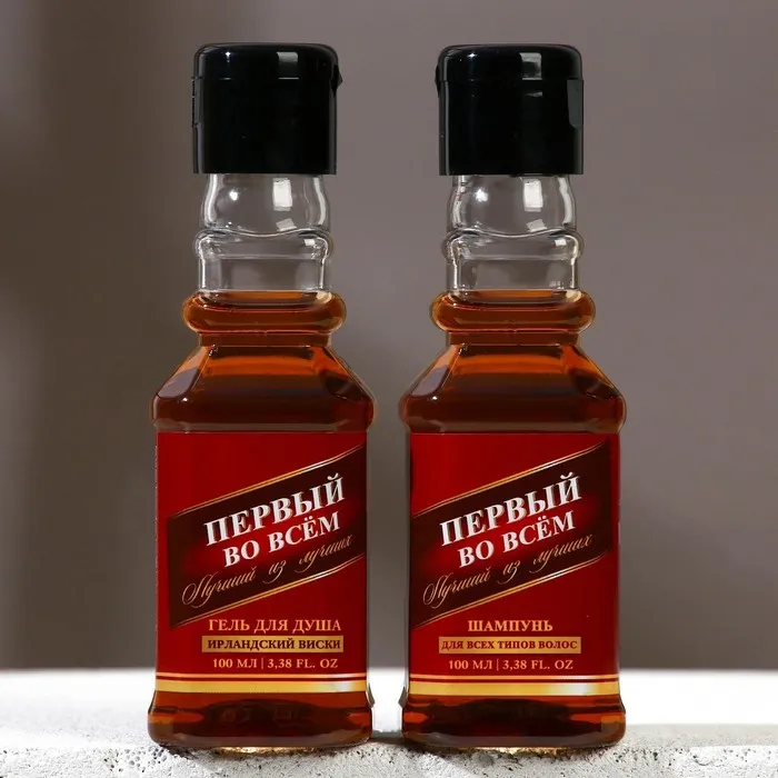 Подарочный набор косметики «Первый во всём», гель для душа и шампунь для волос во флаконах виски, 2×100 мл, Чистое счастье — Характеристики