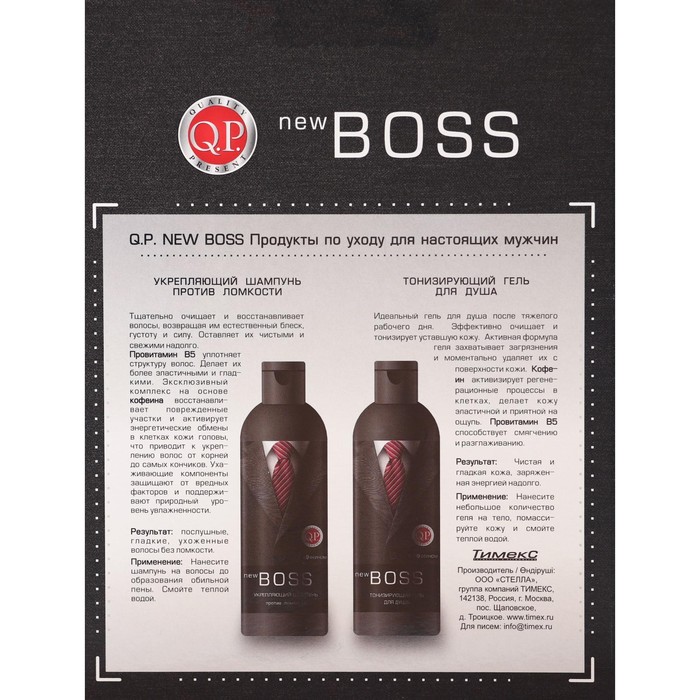 Подарочный набор косметики Q.P. №1114 new boss: шампунь, 250 мл + гель для душа, 250 мл — Характеристики