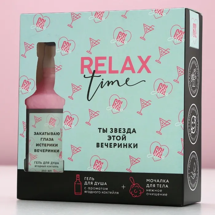 Подарочный набор косметики RELAX TIME, гель для душа виски 250 мл и мочалка для тела, Чистое счастье — Характеристики