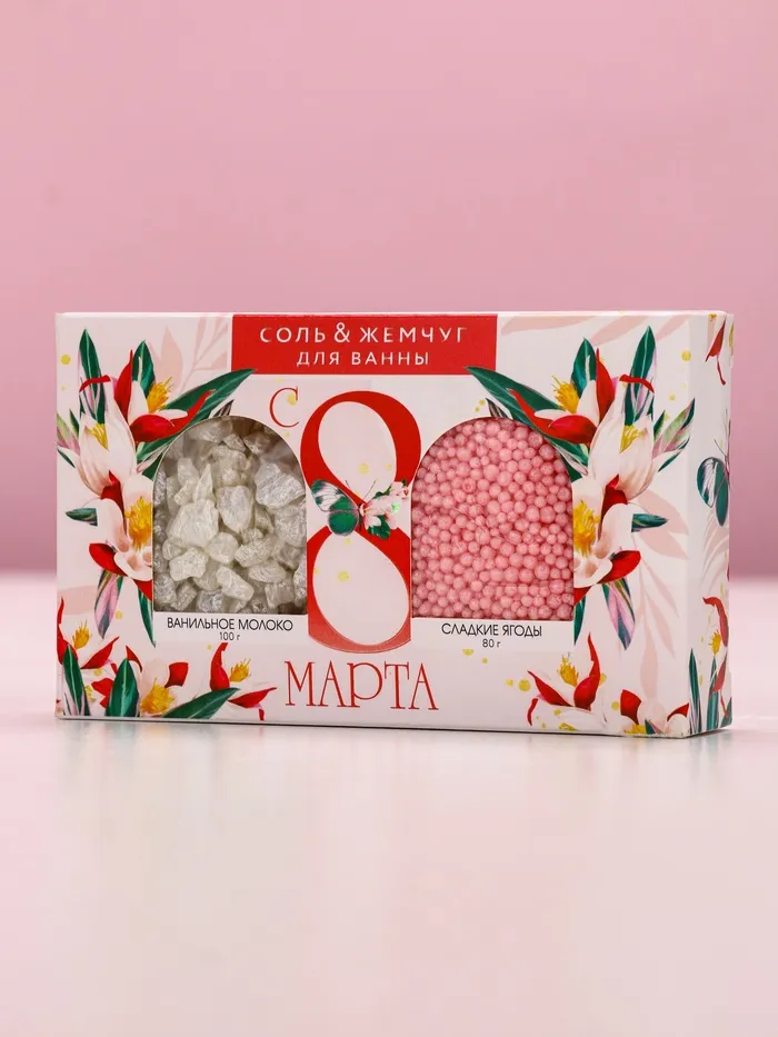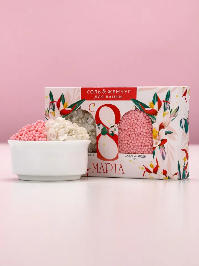 Подарочный набор косметики «С 8 Марта!», соль для ванны 100 г и жемчуг для ванны 80 г, Чистое счастье — Характеристики