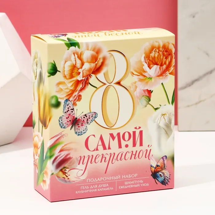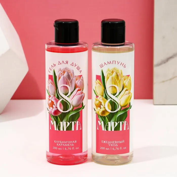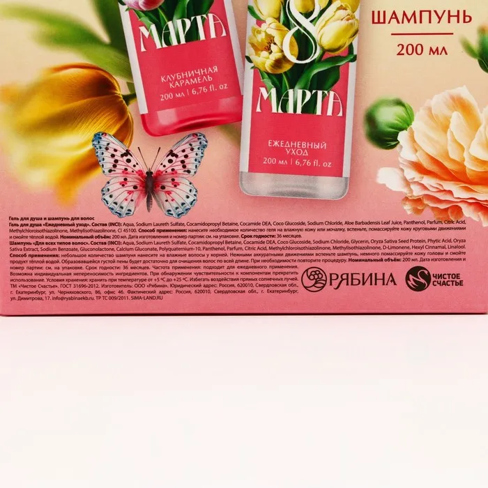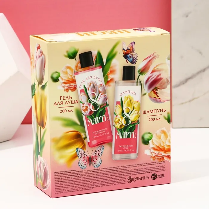 Подарочный набор косметики «Самой прекрасной. 8 марта», гель для душа 200 мл и шампунь для волос 200 мл, Чистое счастье — Характеристики