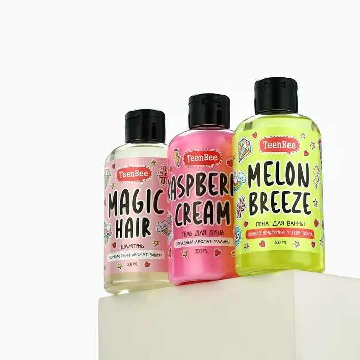 Подарочный набор косметики, шампунь для волос, гель для душа, пена для ванны, 3 х 300 мл, аромат вишни,малины и дыни, TeenBee — Характеристики