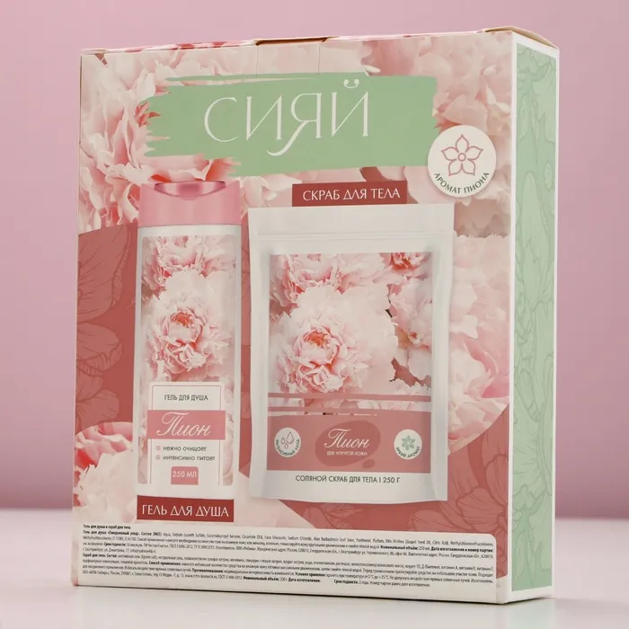 Подарочный набор косметики «Сияй!», гель для душа 250 мл и скраб для тела соляной 250 г, ЧИСТОЕ СЧАСТЬЕ — Характеристики