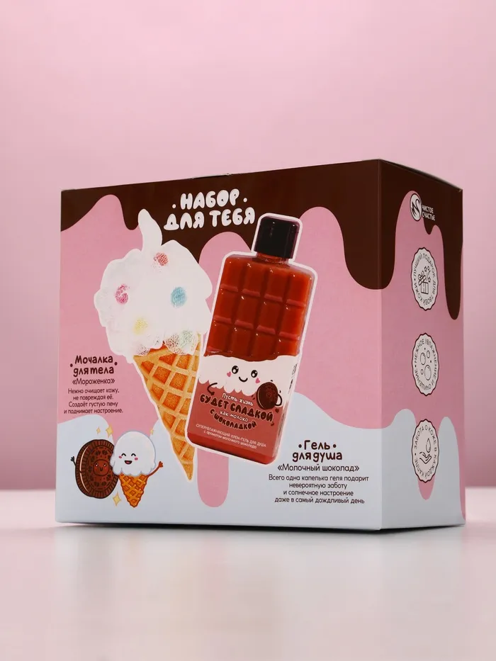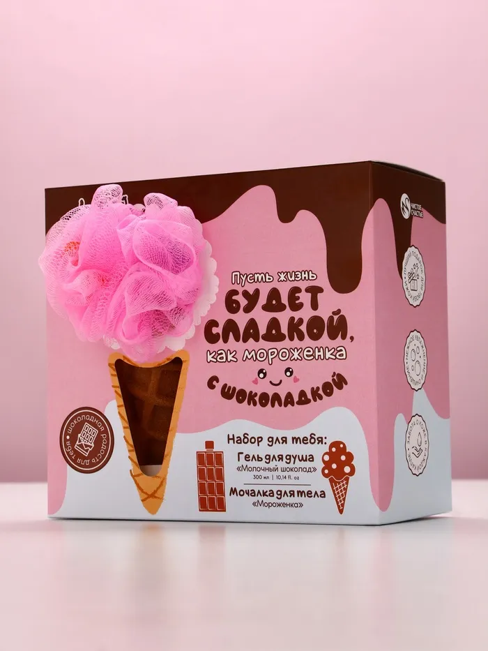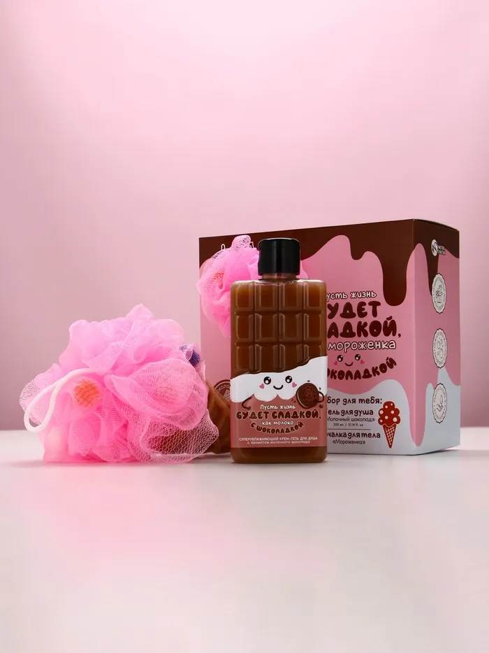 Подарочный набор косметики «Сладкая жизнь»: гель для душа 300 мл и мочалка, Чистое счастье — Характеристики