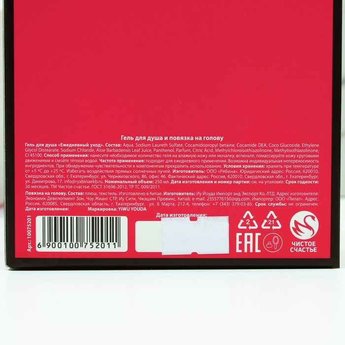 Подарочный набор косметики «Слёзы бывших»: гель для душа виски 250 мл и повязка на голову, Чистое счастье — Характеристики
