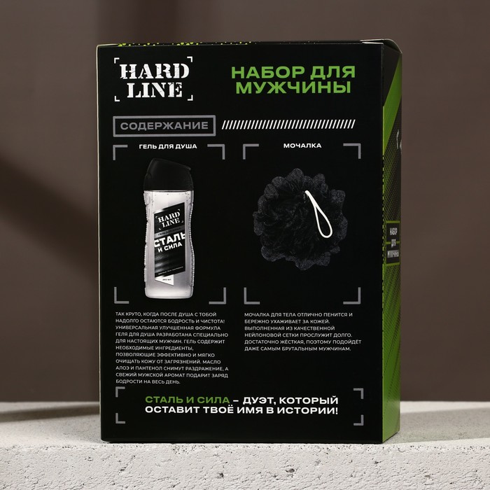 Подарочный набор косметики «Сталь и сила», гель для душа 250 мл и мочалка для тела, HARD LINE — Характеристики