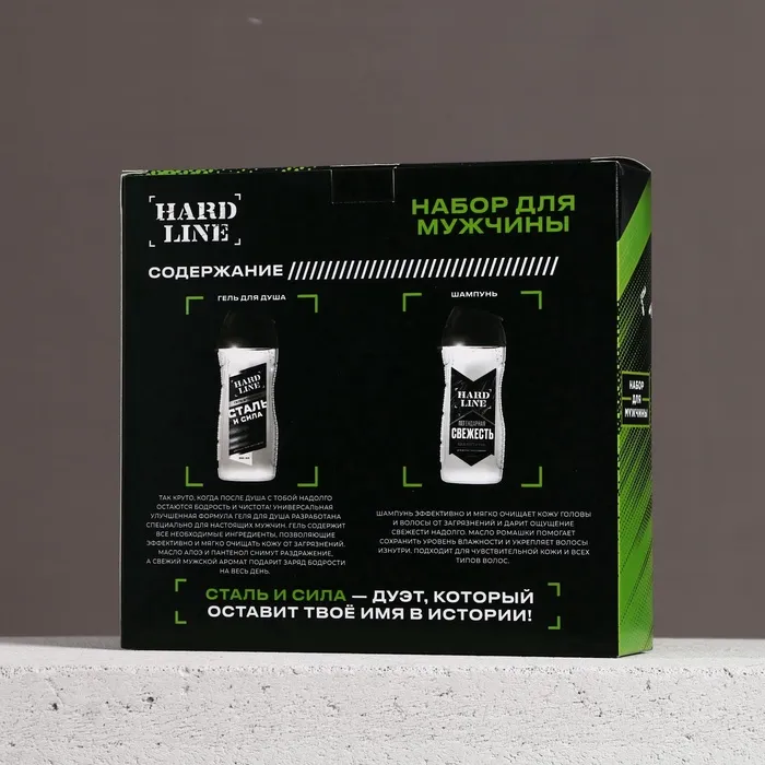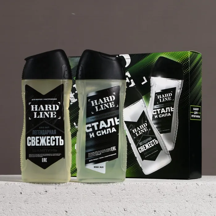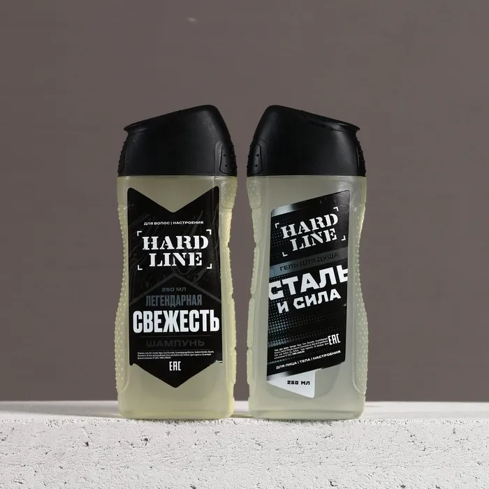 Подарочный набор косметики «Сталь и сила», гель для душа 250 мл и шампунь для волос 250 мл, HARD LINE — Характеристики