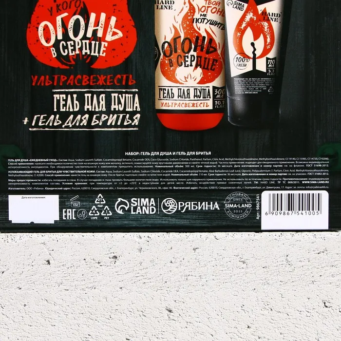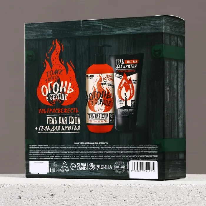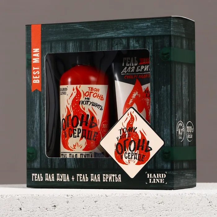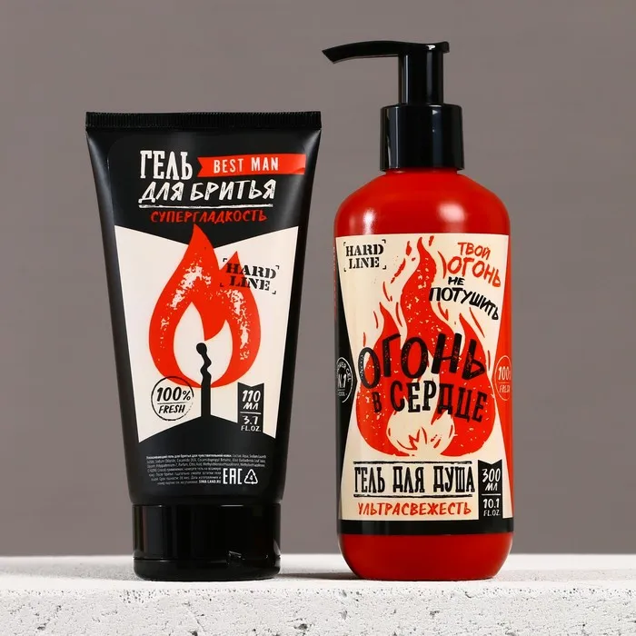 Подарочный набор косметики «Тому, у кого огонь в сердце», гель для душа 300 мл и гель для бритья 110 мл, HARD LINE — Характеристики