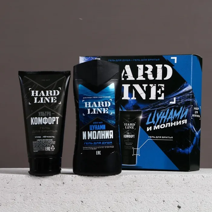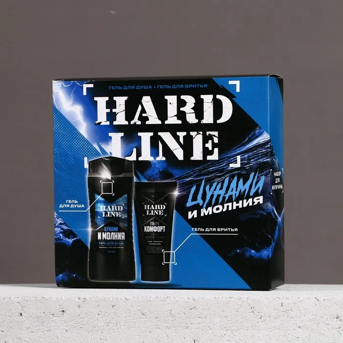 Подарочный набор косметики «Цунами и молния», гель для душа 250 мл и гель для бритья 110 мл, HARD LINE — Характеристики