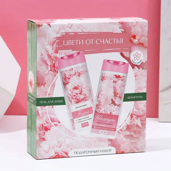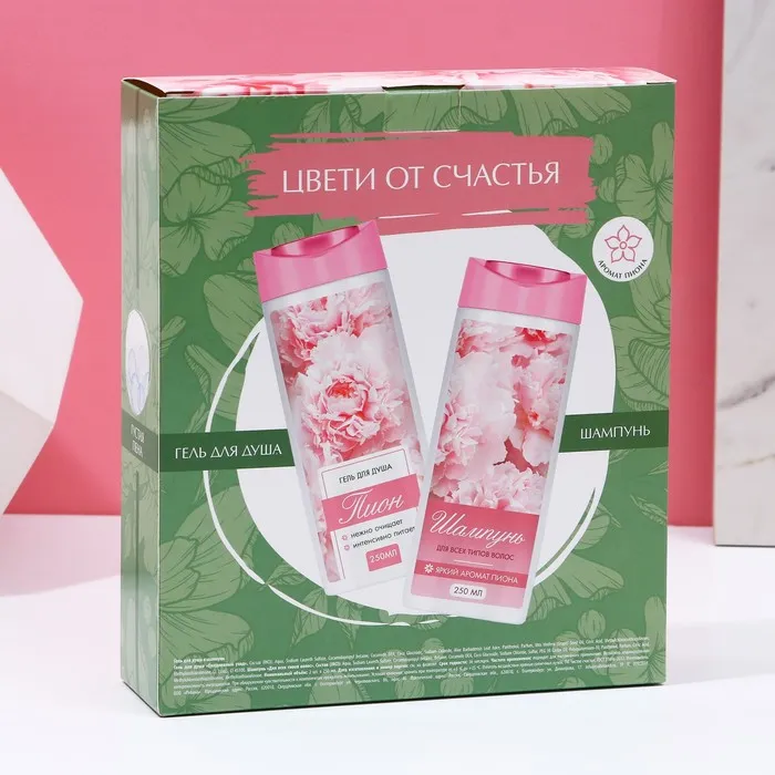 Подарочный набор косметики «Цвети от счастья!» гель для душа 250 мл и шампунь для волос 250 мл, ЧИСТОЕ СЧАСТЬЕ — Характеристики