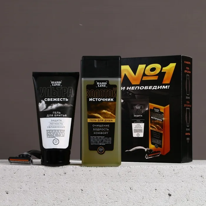 Подарочный набор косметики «Ты №1!», гель для душа 250 мл, гель для бритья 110 мл, бритва, HARD LINE — Характеристики