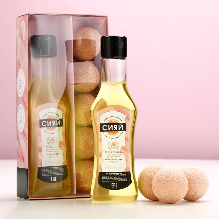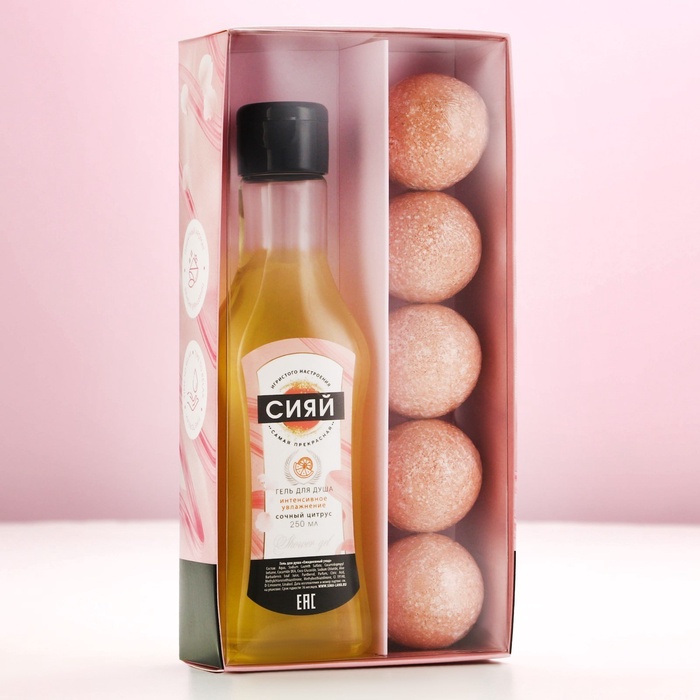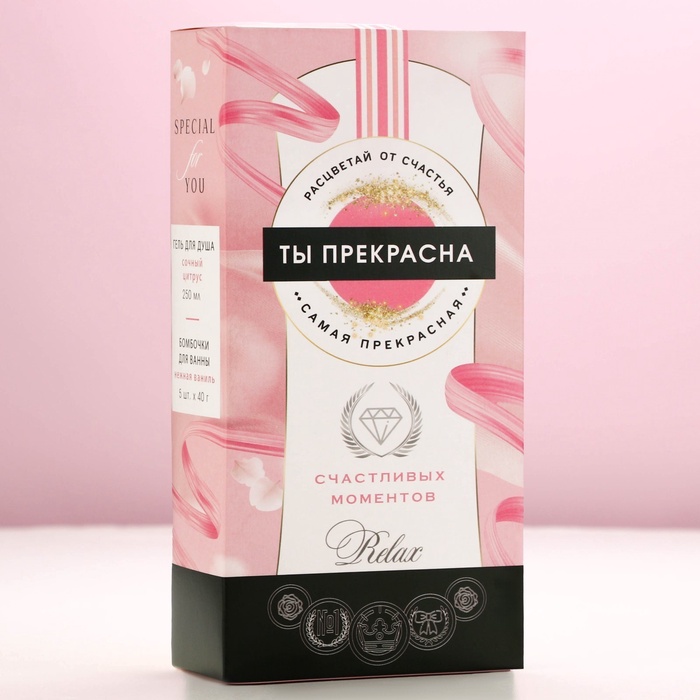 Подарочный набор косметики «Ты прекрасна!», гель для душа мартини 250 мл и бомбочки для ванны 5×40 г, Чистое счастье — Характеристики