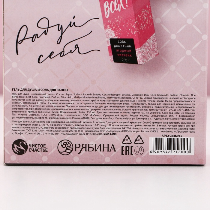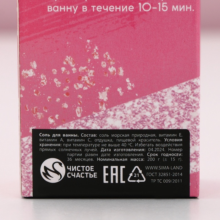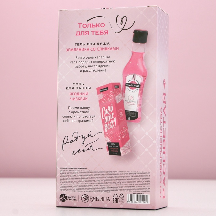 Подарочный набор косметики «Ты прекрасна!», гель для душа мартини 250 мл и соль для ванны 200 г, Чистое счастье — Характеристики