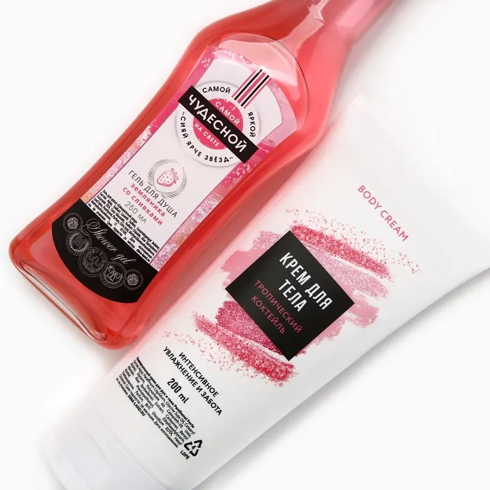 Подарочный набор косметики «Ты совершенна!»: гель для душа во мартини 250 мл и крем для тела 200 мл, Чистое счастье — Характеристики