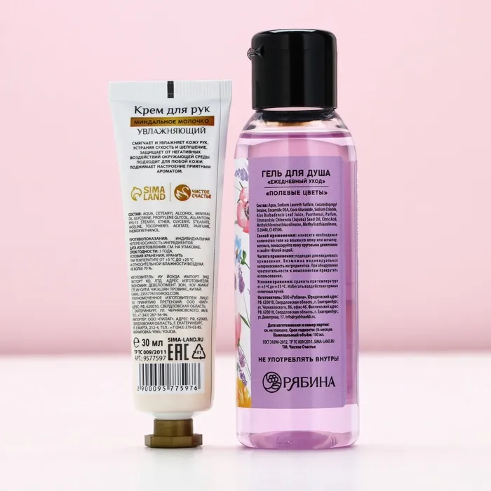 Подарочный набор косметики «Вдохновляй красотой!», гель для душа 100 мл и крем для рук 30 мл, Чистое счастье — Характеристики