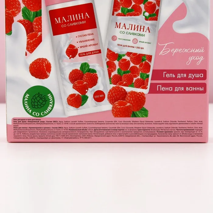 Подарочный набор косметики «Вдохновляй красотой!», гель для душа и пена для ванны, 2×250 мл, аромат малины со сливками, Чистое счастье — Характеристики