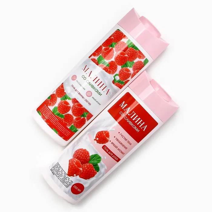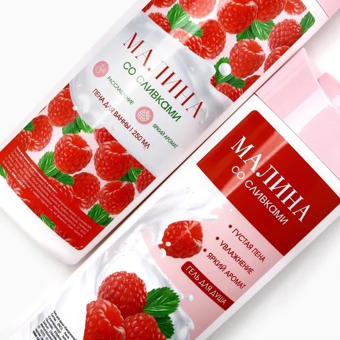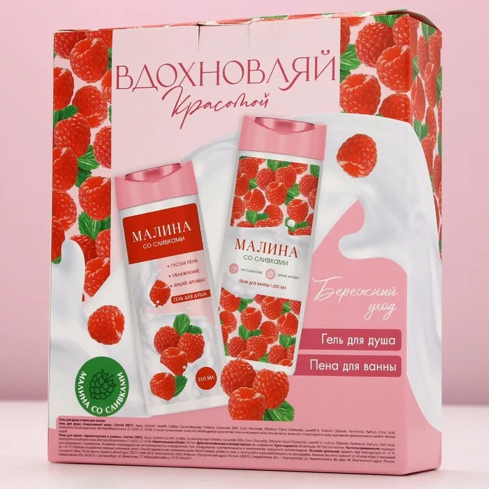 Подарочный набор косметики «Вдохновляй красотой!», гель для душа и пена для ванны, 2×250 мл, аромат малины со сливками, Чистое счастье
