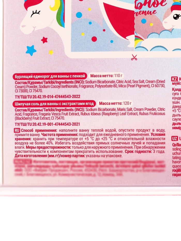 Набор «Единорог + шипучая соль» FABRIK Cosmetology, 230 г — это волшебное сочетание для яркого и ароматного купания. В набор входит фигурка единорога, которая при погружении в воду наполняет её переливами шиммера, окрашивая воду в красивый цвет и создавая сказочную атмосферу. Дополнительно шипучая соль для ванны с экстрактами ягод мягко очищает кожу, расслабляет и дарит ароматное удовольствие. Набор подарит позитивные эмоции и превратит обычное купание в маленький праздник.