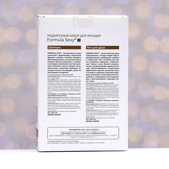 Состав: Water (Aqua), Sodium Laureth Sulfate, Cocamidopropyl Betaine, Sodium Chloride, Cocamide DEA, Polyquaternium 7, Sodium Lauroyl Sarcosinate, Trifolium Pratense (Red Clover) Extract, Rosa Canina Fruit Extract, Propylene Glycol, Muscone Sexy, Parfum (Fragrance), Glycol Distearate, Cocamide MEA, Laureth-10, Glycerin, Disodium EDTA, Methylchloroisothiazolinone, Methylisothiazolinone, Citric Acid, Hexyl Cinnamal, Butylphenyl Methylpropional.