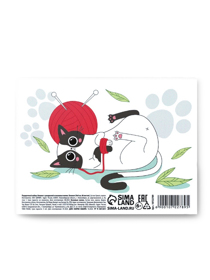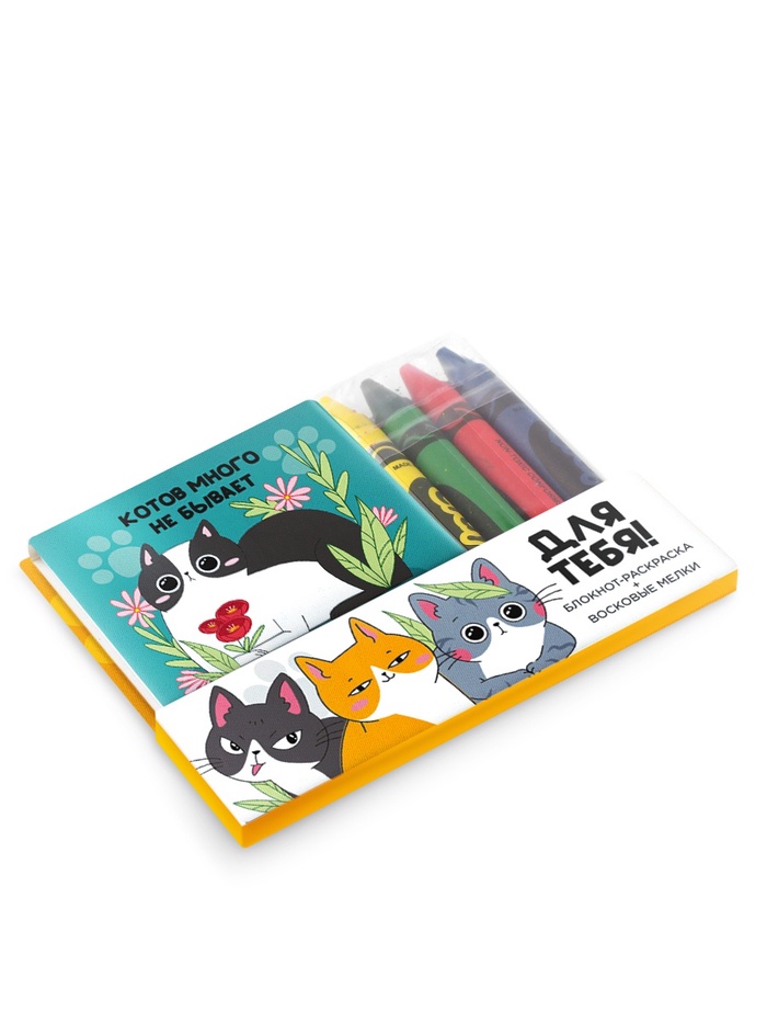 Подарочный набор «Котов много не бывает», блокнот-раскраска и восковые мелки — Характеристики