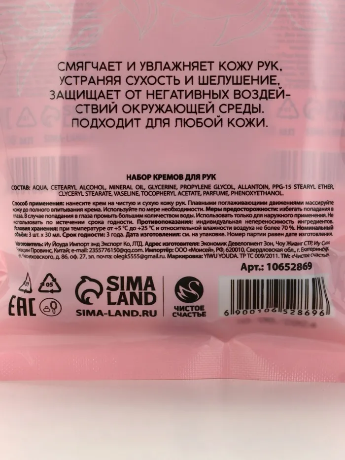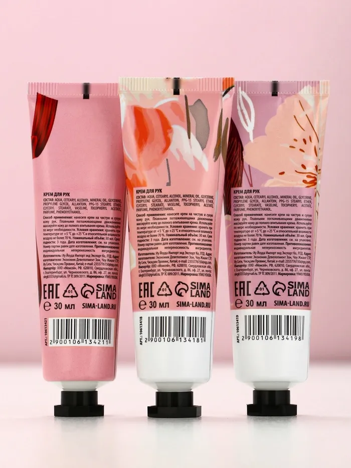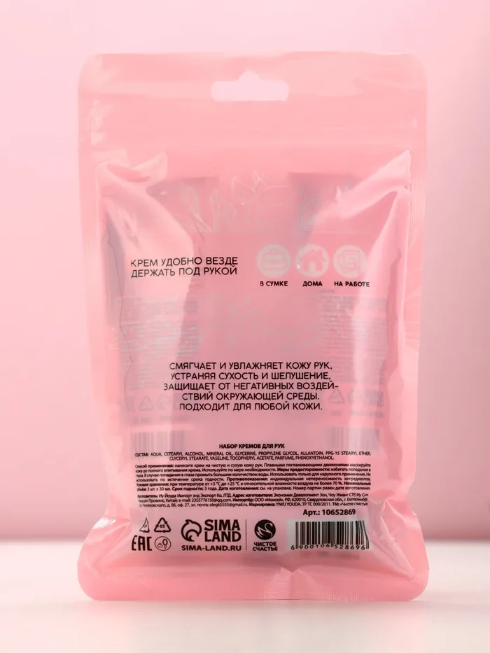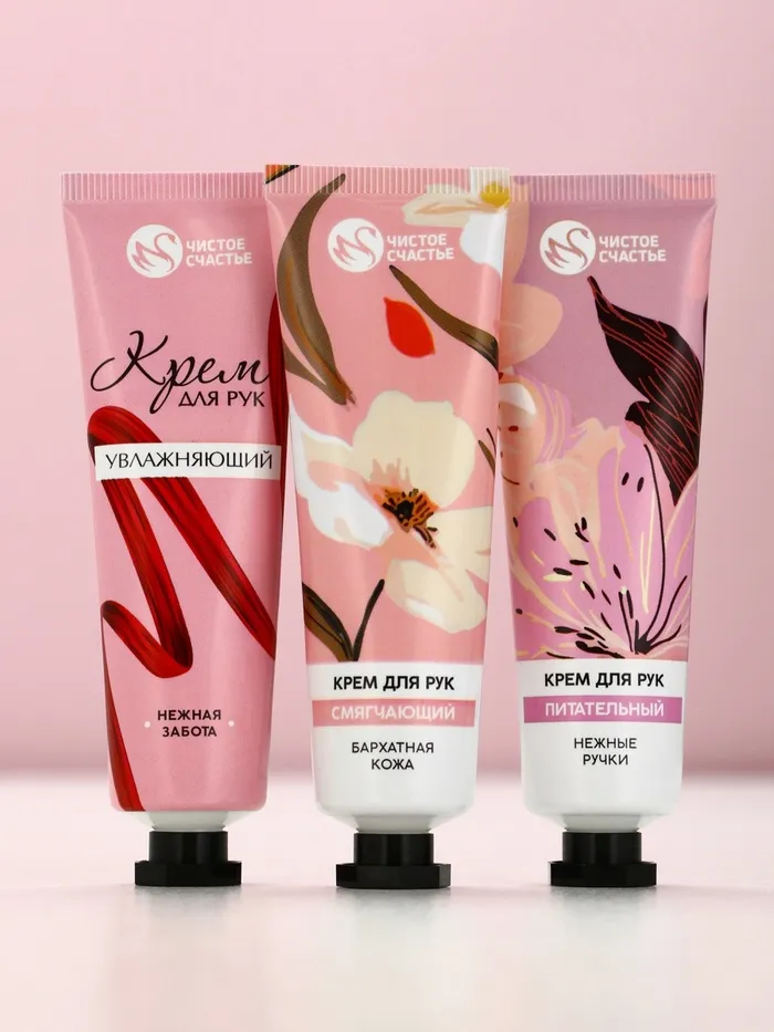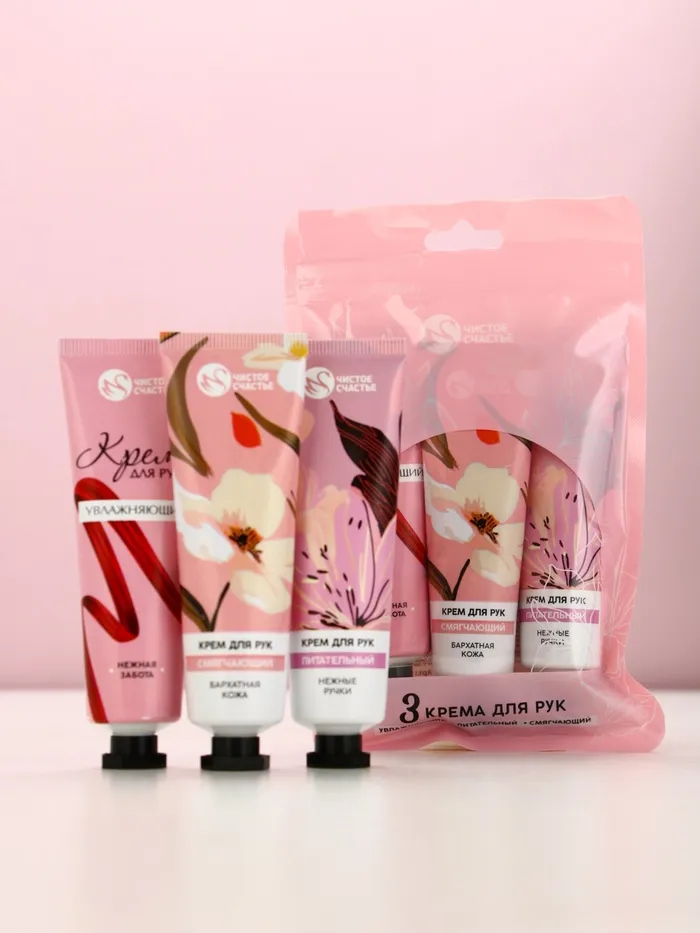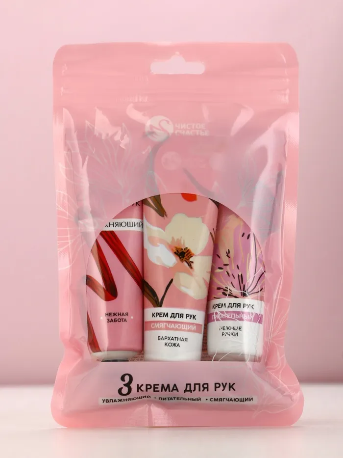 Подарочный набор, крем для рук, 3 шт., увлажнение, питание и смягчение, Чистое счастье — Характеристики