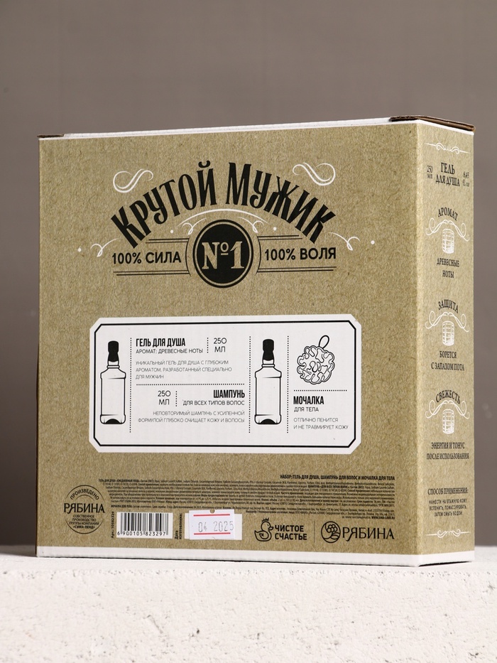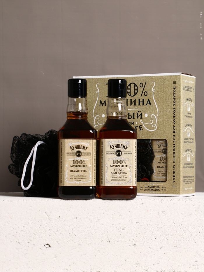 Подарочный набор «Крутой мужик», гель для душа, шампунь для волос и мочалка, 2×250 — Характеристики