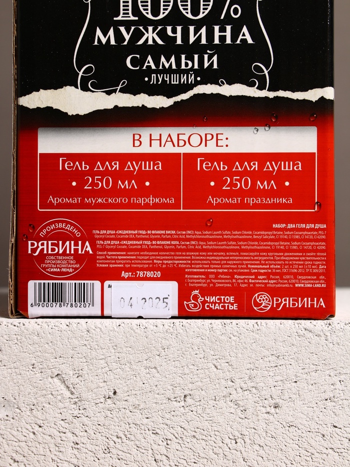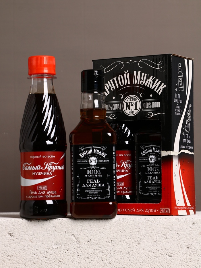 Подарочный набор «Крутой мужик»: гель для душа виски и кола, 2×250 мл, Чистое счастье — Характеристики